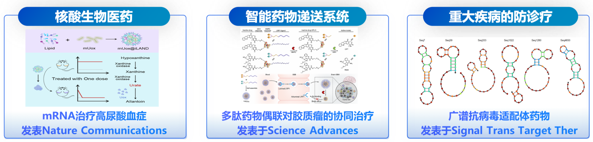 • 核酸生物医药研究:针对重大疾病(感染性疾病、肿瘤、高血脂等)发展基于核酸的创新药物与疫苗;