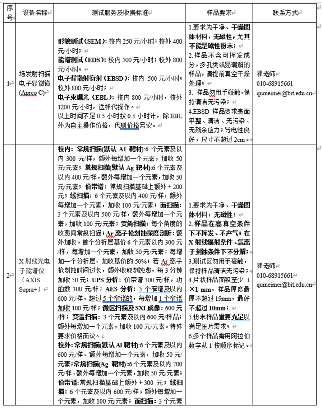 目前XPS测试仅接受送样测试,请提前联系瞿老师,约定送样时间(电话010-68915661,邮箱:qumeimei@bit.edu.cn),送样时须带预约单方可进行测试。