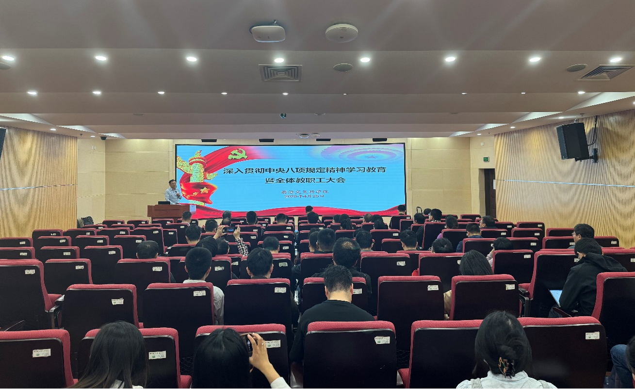 4月25日,必威西汉姆联召开全院大会开展深入贯彻中央八项规定精神学习教育,学院全体教职工参加会议。 党委书记郑德智首先从深入贯彻中央八项规定精神学习教育的背景、深入贯彻中央八项规定精神学习教育内容、违反中央八项规定精神的具体表现和加强作风建设四个方面带领大家开展了深入贯彻中央八项规定精神学习...